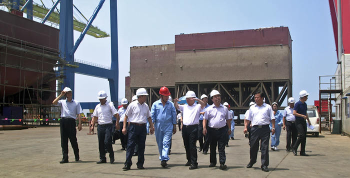 在海西重機(jī)總裝現(xiàn)場(chǎng),張德平副市長實(shí)地考察了待批量發(fā)往黎巴嫩的岸橋和輪胎吊項(xiàng)目、發(fā)往馬來西亞的帶斗門機(jī)項(xiàng)目、發(fā)韓國鮮光新港的軌道吊項(xiàng)目及承制、調(diào)試的功能性海工平臺(tái)項(xiàng)目等。并聽取了海西重機(jī)董事長孫國慶關(guān)于企業(yè)上半年經(jīng)濟(jì)運(yùn)行情況、轉(zhuǎn)型升級(jí)取得的成績以及在目前經(jīng)濟(jì)形勢(shì)下的合同承接情況。