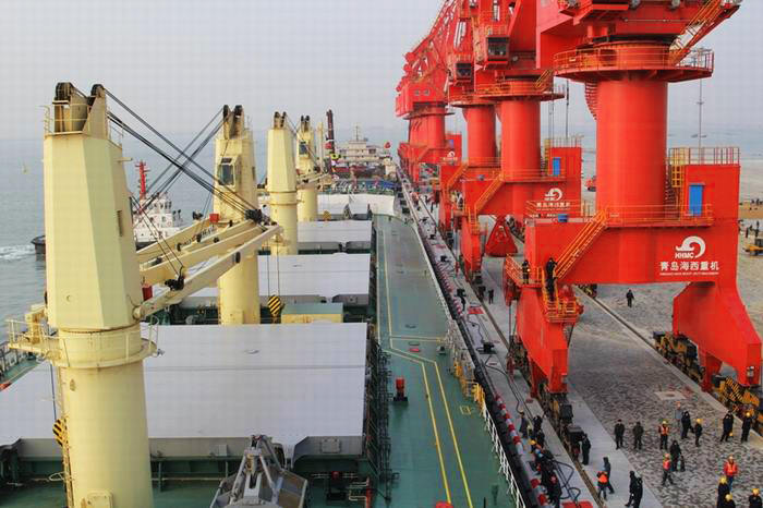 贛榆港區(qū)擁有各類新型碼頭裝卸設備130余套,其中MQ4043門座起重機、MQ2537門座起重機等14臺碼頭前沿裝卸關重設備由青島海西重機設計、制造,它們的投產使用,進一步提高了港口的作業(yè)能力,助力贛榆港區(qū)吞吐量成功突破1000萬噸。