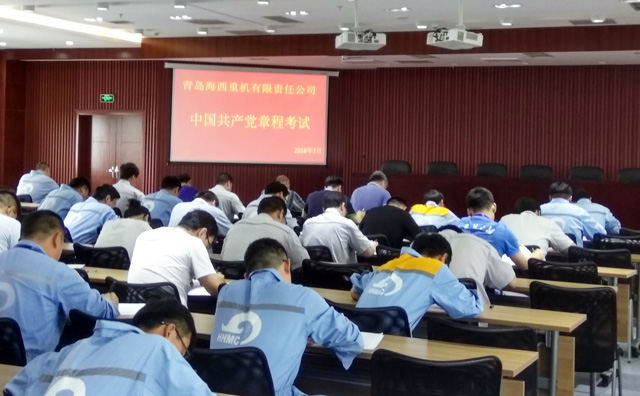 7月28日下午14點(diǎn),海西重機(jī)黨委組織公司正式黨員開(kāi)展黨章考試,海西重機(jī)黨委書記、董事長(zhǎng)鄧振山,黨委副書記、總經(jīng)理張懷志,黨委副書記、紀(jì)委書記朱聲凱,副總經(jīng)理、工會(huì)主席代振華參加了本次考試,共計(jì)120余名黨員參加了考試,預(yù)示著海西重機(jī)黨委成功組織開(kāi)展逐字逐句學(xué)黨章活動(dòng)。