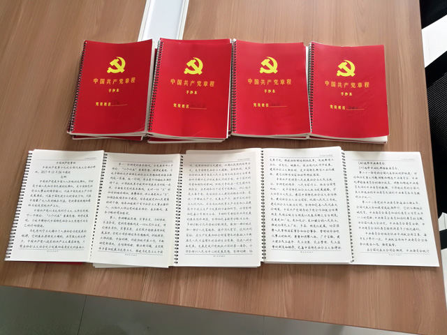 項(xiàng)目黨支部開(kāi)展黨章抄寫活動(dòng)