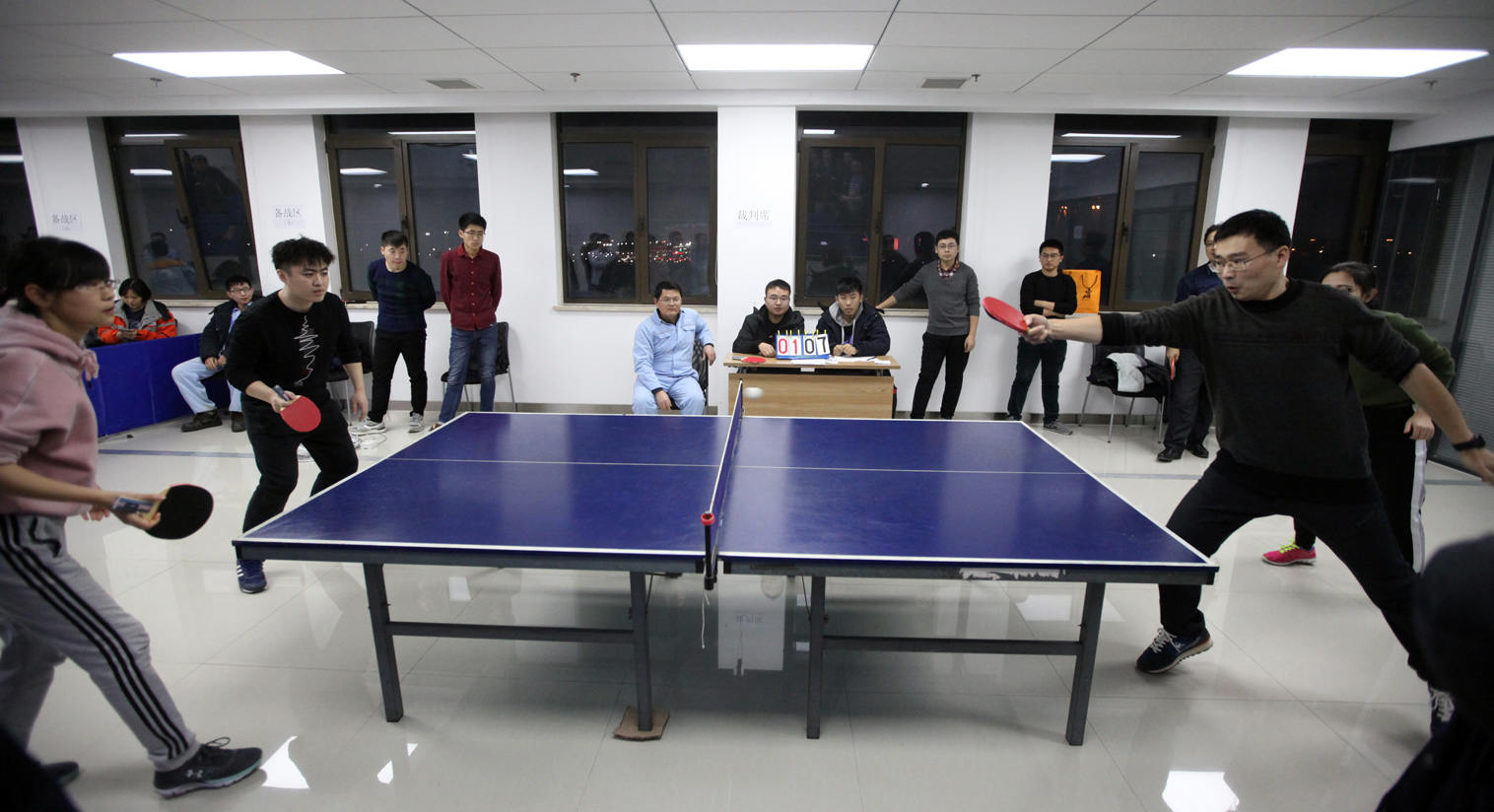 比賽分上下半?yún)^(qū),采取循環(huán)賽、三局兩勝制,分為男子單打、女子單打、男女混雙、男雙、男單進行團體比賽。作為“國球”,公司領(lǐng)導(dǎo)和廣大職工非常關(guān)注本次乒乓球比賽活動,廣大職工紛紛到場為自己支持的代表隊吶喊助威。公司總經(jīng)理張懷志、紀委書記朱聲凱、副總經(jīng)理代振華也到現(xiàn)場為選手鼓勁加油,并為獲獎團隊頒獎。