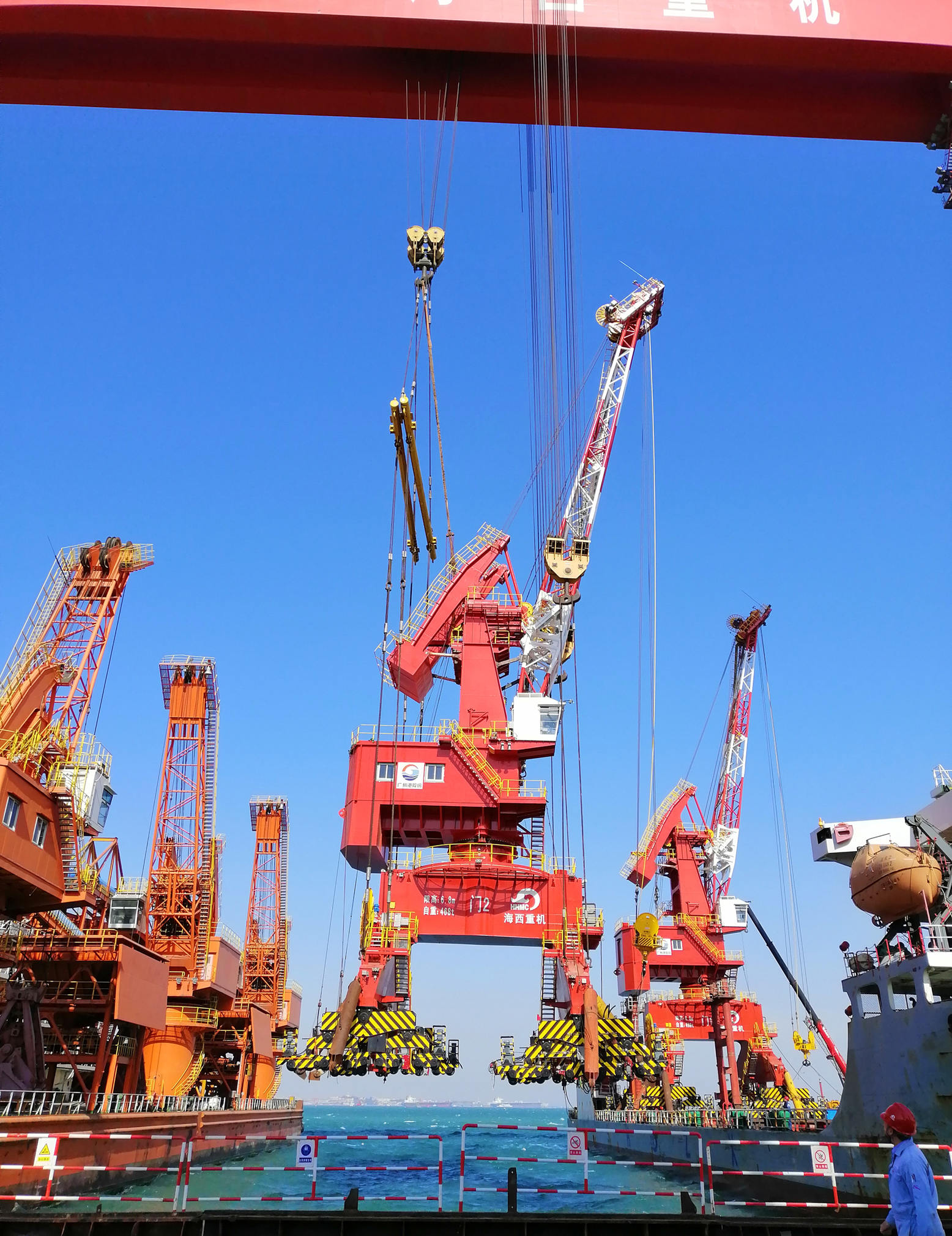 因初次起吊整機(jī)上船,船面空間緊湊,在場所有的工作人員都屏住了呼吸,時刻觀察著,現(xiàn)場除了龍門吊運(yùn)轉(zhuǎn)的轟鳴聲,就只剩下海浪拍打碼頭的聲音在耳邊回響?!耙?!落位成功!”——靜靜地關(guān)注著這一過程的我們在落位成功的那一瞬間,心底無比的振奮,澎湃的心潮久久不息。自14日下午18點(diǎn)開始吊裝前詳細(xì)的聯(lián)合檢查,確認(rèn)無誤后,20點(diǎn)正式起吊,22點(diǎn)落位完成,23點(diǎn)順利摘鉤,經(jīng)過近5個小時的忙碌作戰(zhàn),整機(jī)吊裝工作一氣呵成,效率之高著實(shí)令人驚嘆。
