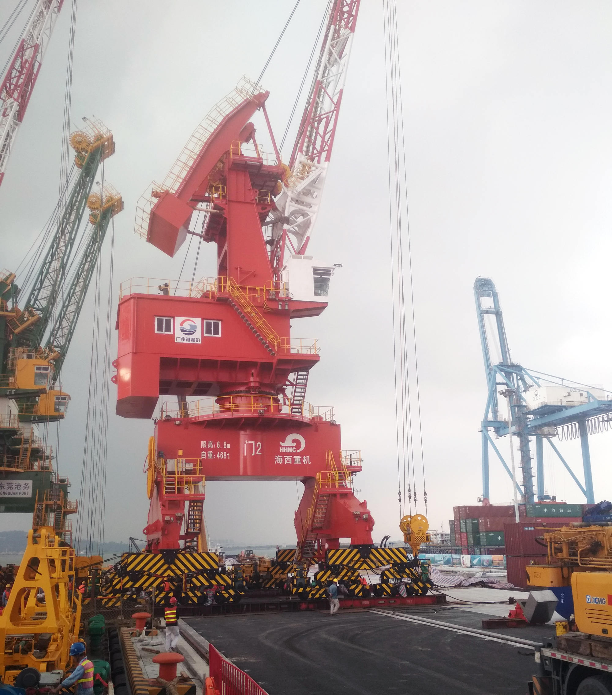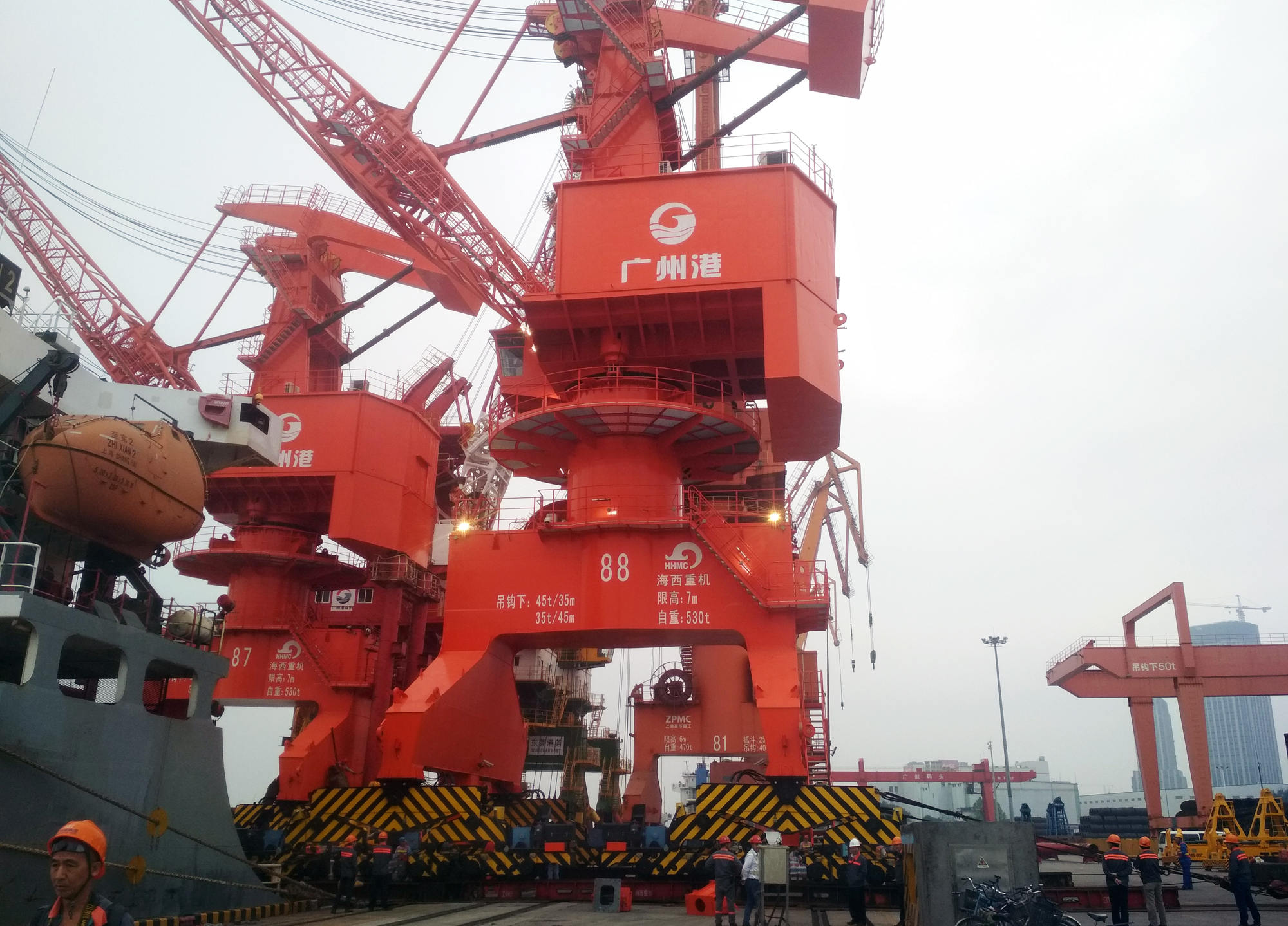 滿滿的一船門機。3月19日,我司分別為廣州港股份有限公司黃埔港務分公司、廣州港股份有限公司新沙港務有限公司、東莞市虎門港駁船碼頭有限公司制造的各2臺門機(共6臺)在海西重機的生產碼頭同船順利發(fā)運。3月26日,運輸船安全抵達黃埔港,一場卸船攻堅戰(zhàn)就此展開。
