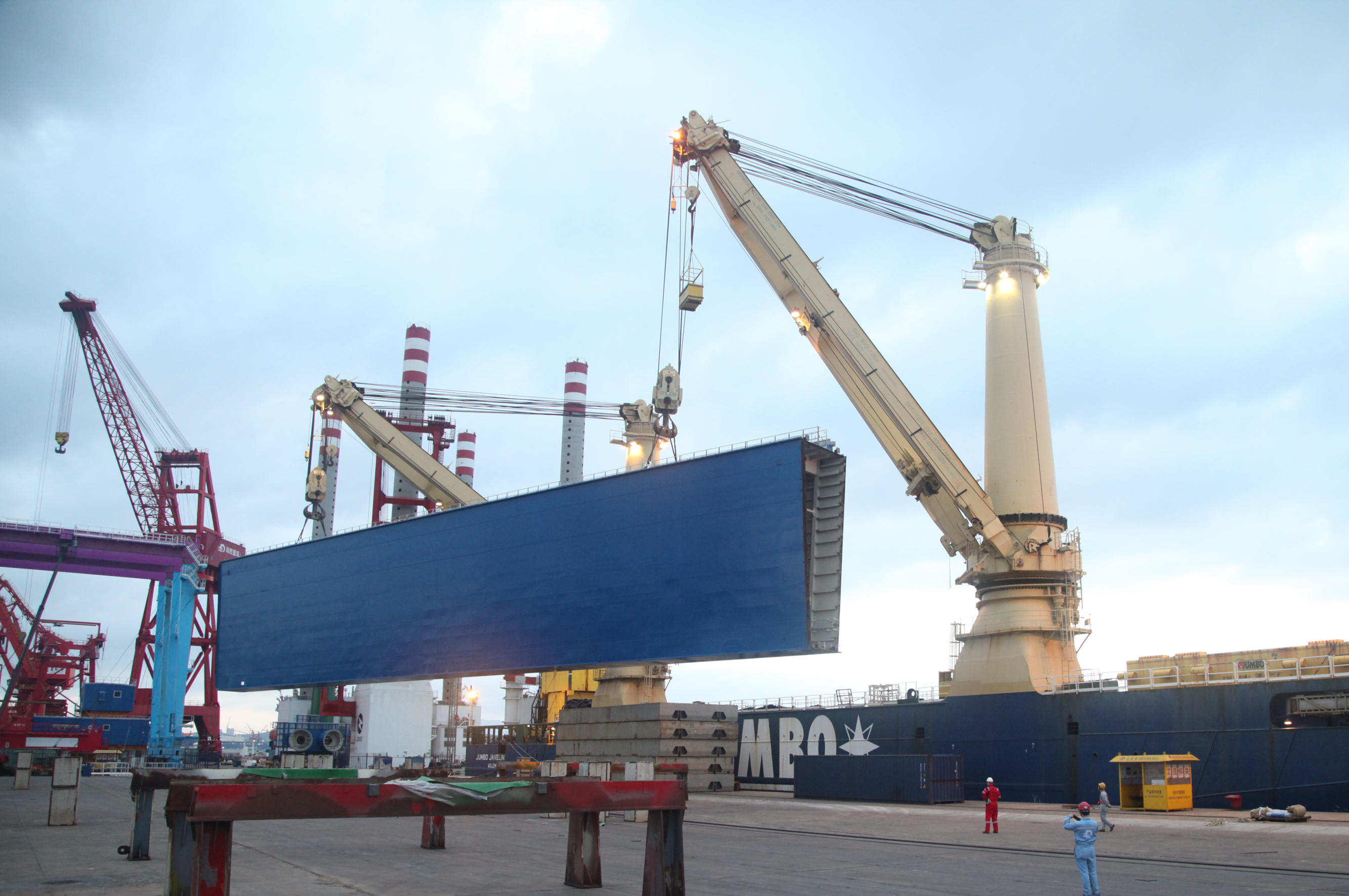 海西重機從設(shè)計研發(fā)、生產(chǎn)管理、質(zhì)量控制、風(fēng)險管控等方面嚴格把控,從項目開始即高質(zhì)量嚴要求,對設(shè)備性能、安全性、使用維護等設(shè)計全面精心把關(guān)審核,對尺寸、精度、外觀、安裝接口位置等高精度控制,得到業(yè)主及駐廠意大利船級社監(jiān)理的認可??紤]到用戶現(xiàn)場無大型起重設(shè)備,此次發(fā)運采用具有2臺900噸克令吊的重吊船進行作業(yè),滿足了所有吊裝和運輸要求,不僅節(jié)約了項目成本,而且提高了裝卸船的工作效率。