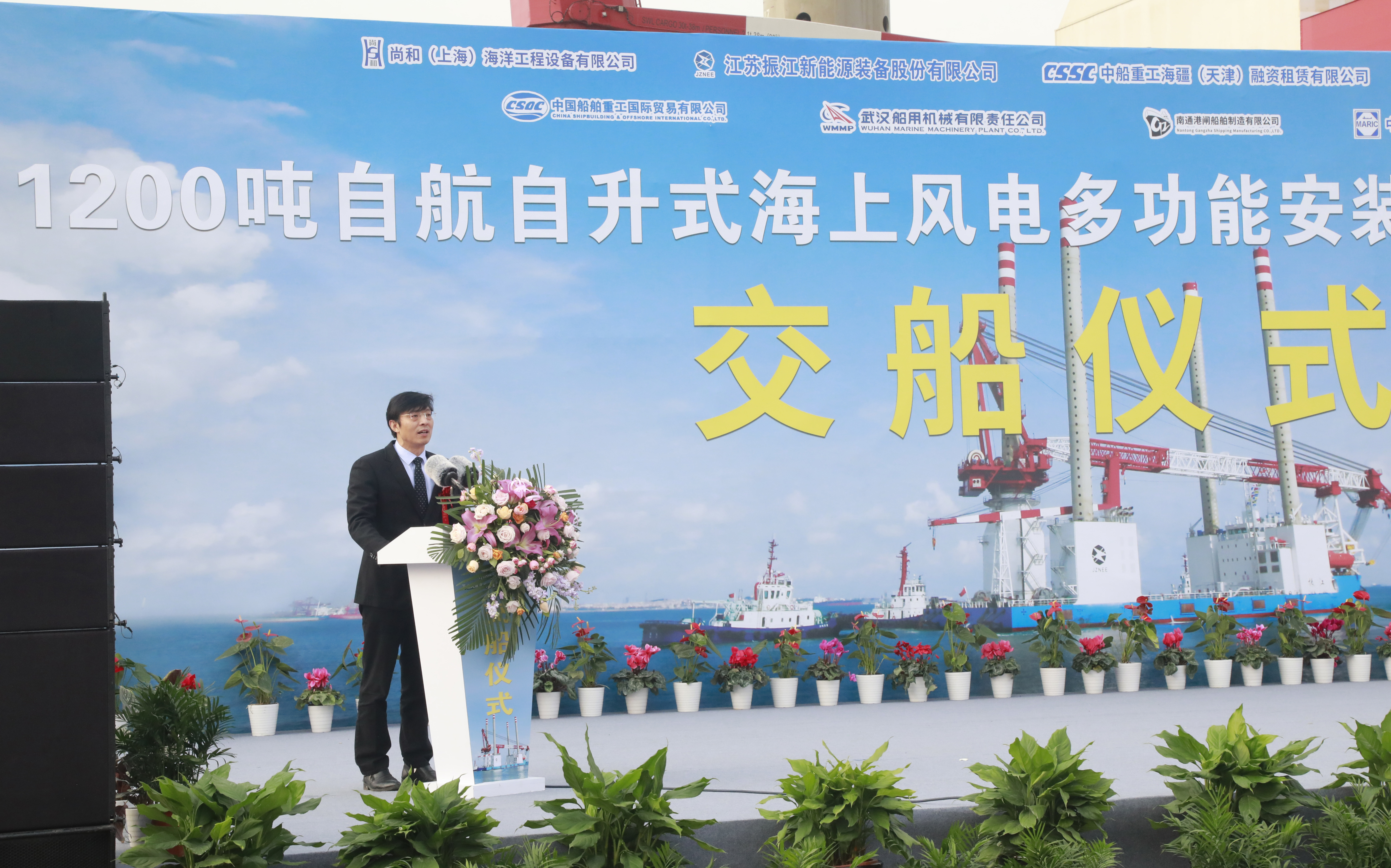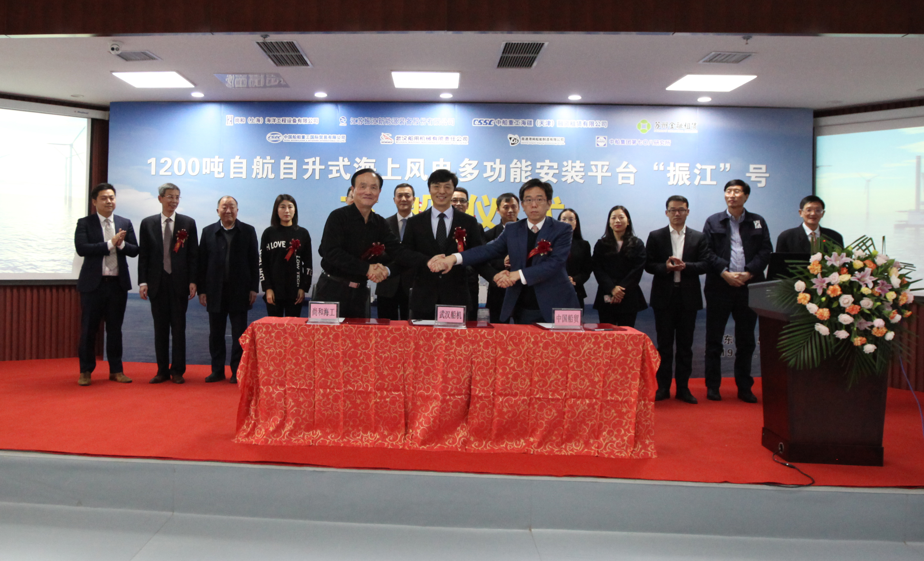 12月13日下午,國(guó)內(nèi)首座1200噸自航自升式風(fēng)電安裝平臺(tái)——“振江”號(hào)交付儀式在武漢船機(jī)海西重機(jī)隆重舉行。尚和(上海)海洋工程裝備有限公司、江蘇振江新能源裝備股份有限公司、中信銀行、中國(guó)船舶及海洋工程設(shè)計(jì)研究院、中國(guó)船級(jí)社等單位領(lǐng)導(dǎo)和項(xiàng)目相關(guān)人員共同見(jiàn)證了這一歷史性時(shí)刻。
