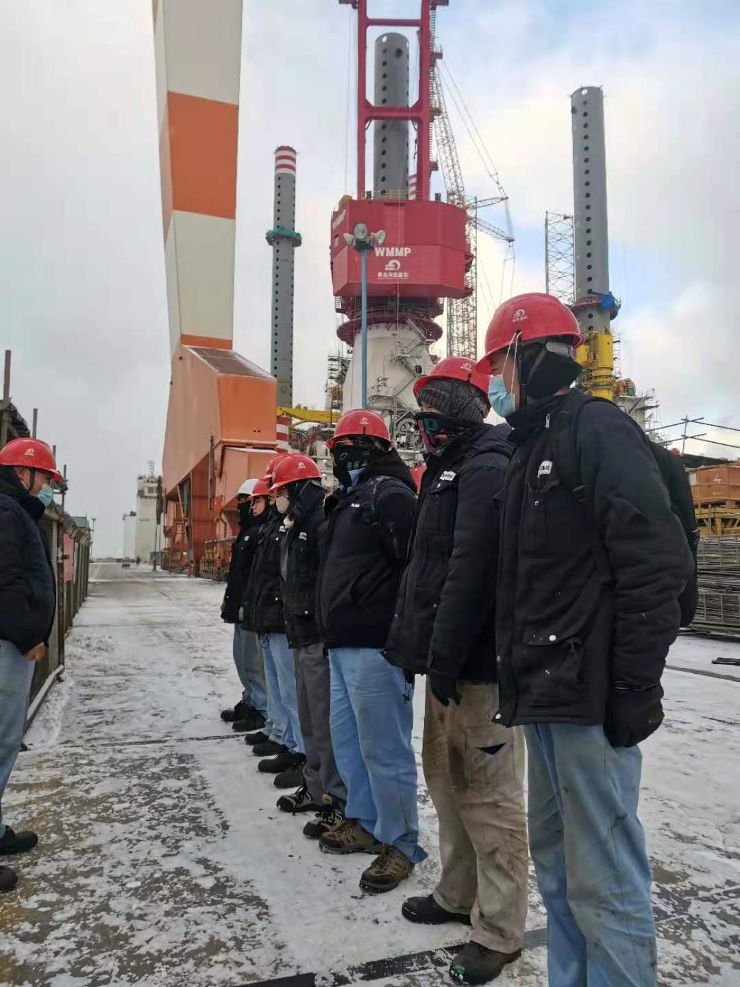 1月7日,山東經(jīng)歷了一次罕見的寒潮,煙臺下起了雪,這是第二場雪,也是我們要克服的又一個惡劣天氣,寒風(fēng)里摻雜著雪,氣溫也是零下好幾度。一如既往的早班會,特意強調(diào)一下安全,然后根據(jù)現(xiàn)場情況,交代好工作,我們就整裝上陣,開始一天工作。現(xiàn)場的問題在一個一個解決,堅定了我們的信心。我常常鼓勵大家,“咱們再辛苦辛苦,早日結(jié)束。”隊友們也會簡單回一句暖心的話,“這都不是事,我們都想早點干完。”