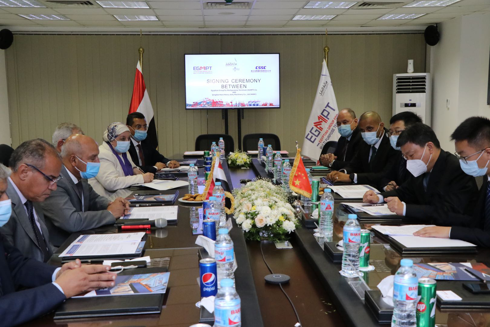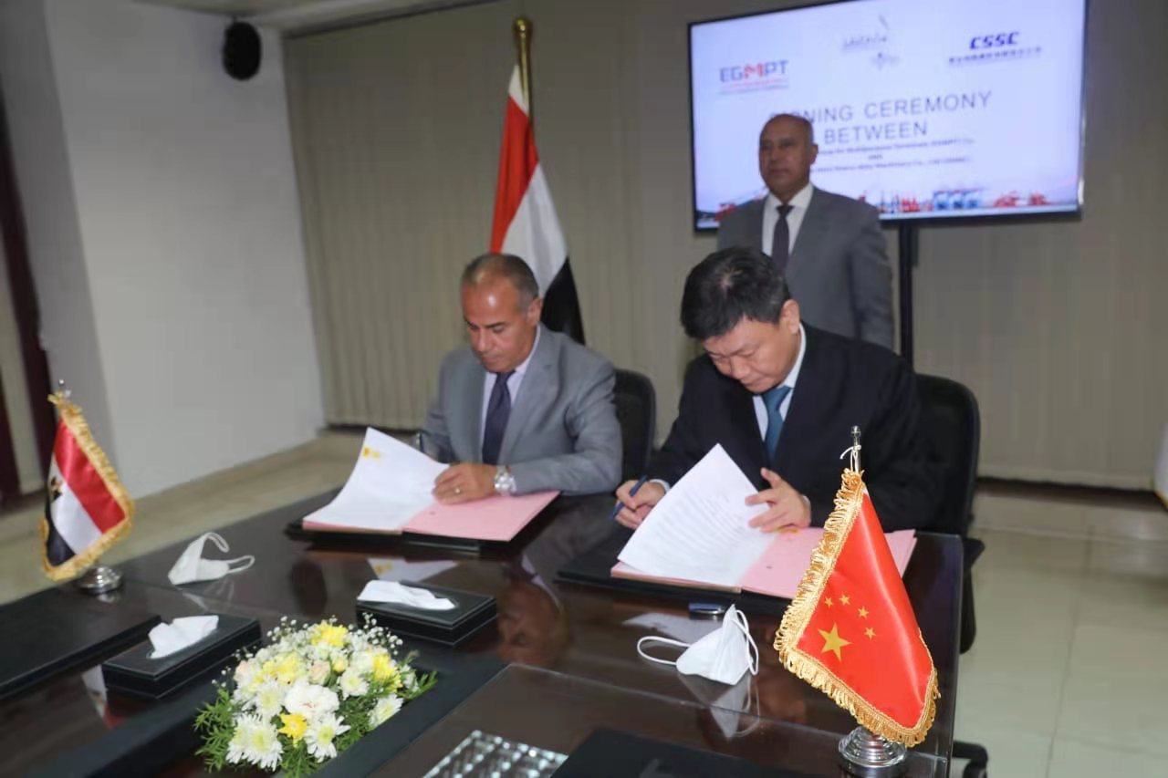 當(dāng)?shù)貢r(shí)間8月7日,中國(guó)船舶集團(tuán)旗下武漢船機(jī)海西重機(jī)公司與埃及亞歷山大港多用途碼頭簽訂批量岸橋項(xiàng)目。埃及交通部部長(zhǎng)Kamel Elwazir、多用途碼頭(EGMPT)主席Abdelkader Darwish、達(dá)飛集團(tuán)駐埃及負(fù)責(zé)人Eng.Tariq Zaghloul及EGMPT技術(shù)團(tuán)隊(duì),海西重機(jī)黨委書記、董事長(zhǎng)鄧振山等出席現(xiàn)場(chǎng)簽約儀式。