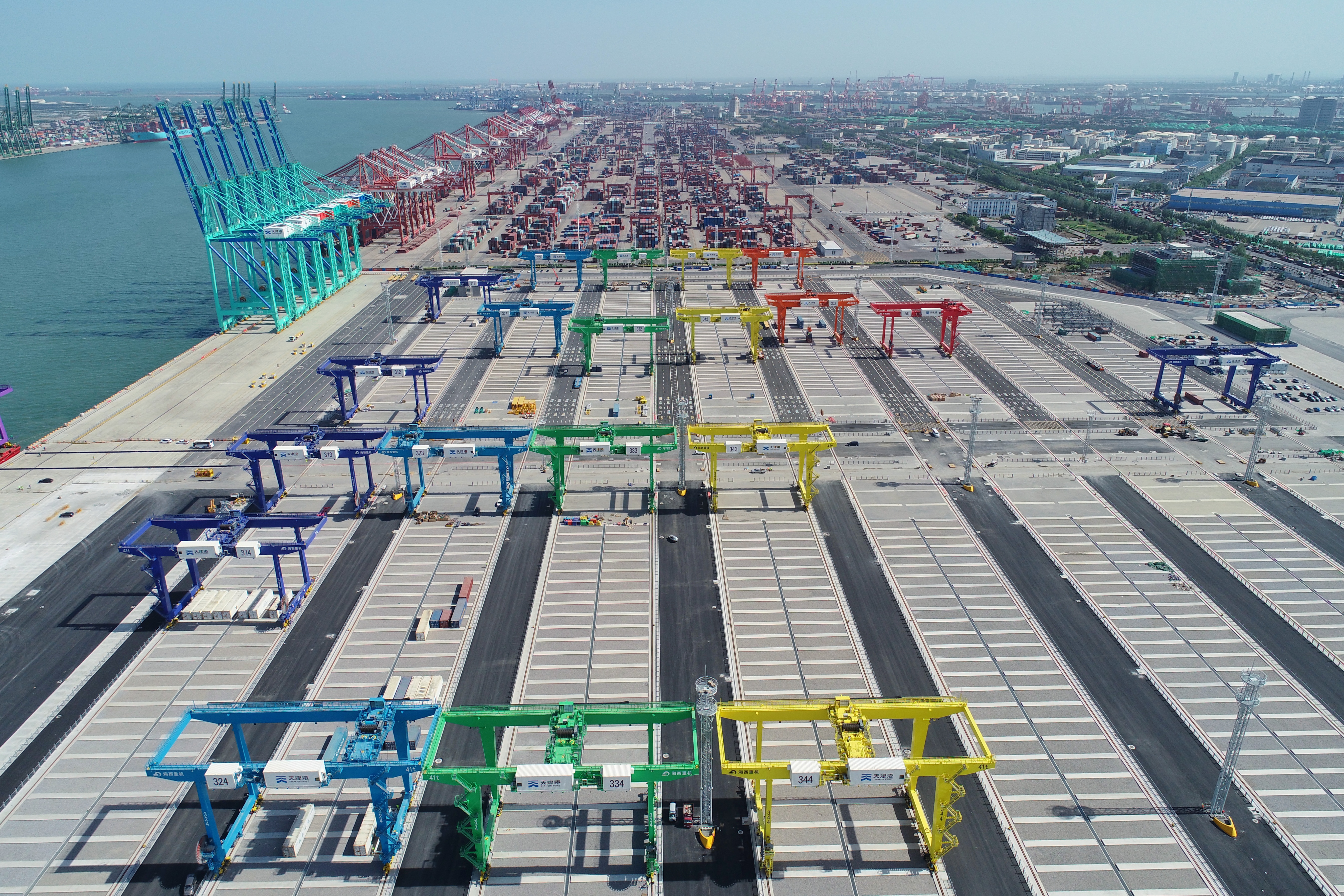 9月25日,中國船舶集團旗下武漢船機海西重機公司為天津港北疆港區(qū)C段智能化集裝箱碼頭二期工程項目打造的首批7臺自動化軌道吊全部順利完成上岸,與一期自動化軌道吊會師天津港。