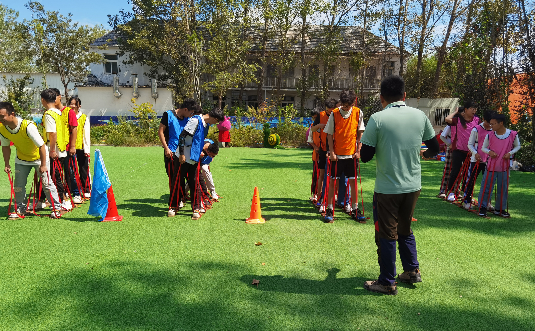 秋風(fēng)送爽,秋意宜人。早上九點鐘,大家到達(dá)了嶗山王哥莊拓展基地,活動拉開帷幕。新員工們分成了“美團隊”、“餓了么隊”、“汪汪隊”、“芭比猛男隊”四支隊伍。選隊長、起隊名、喊隊訓(xùn),大家相互了解加深,團隊氛圍逐漸熱烈,為接下來的培訓(xùn)做好準(zhǔn)備。各種室外室內(nèi)拓展項目——“挑戰(zhàn)團隊極限”、“有軌電車”、“急速60秒”、“旱地冰壺挑戰(zhàn)賽”、“團隊金字塔”,用豐富多彩的趣味游戲寓教于樂,幫助學(xué)員體會團隊合作的重要性。