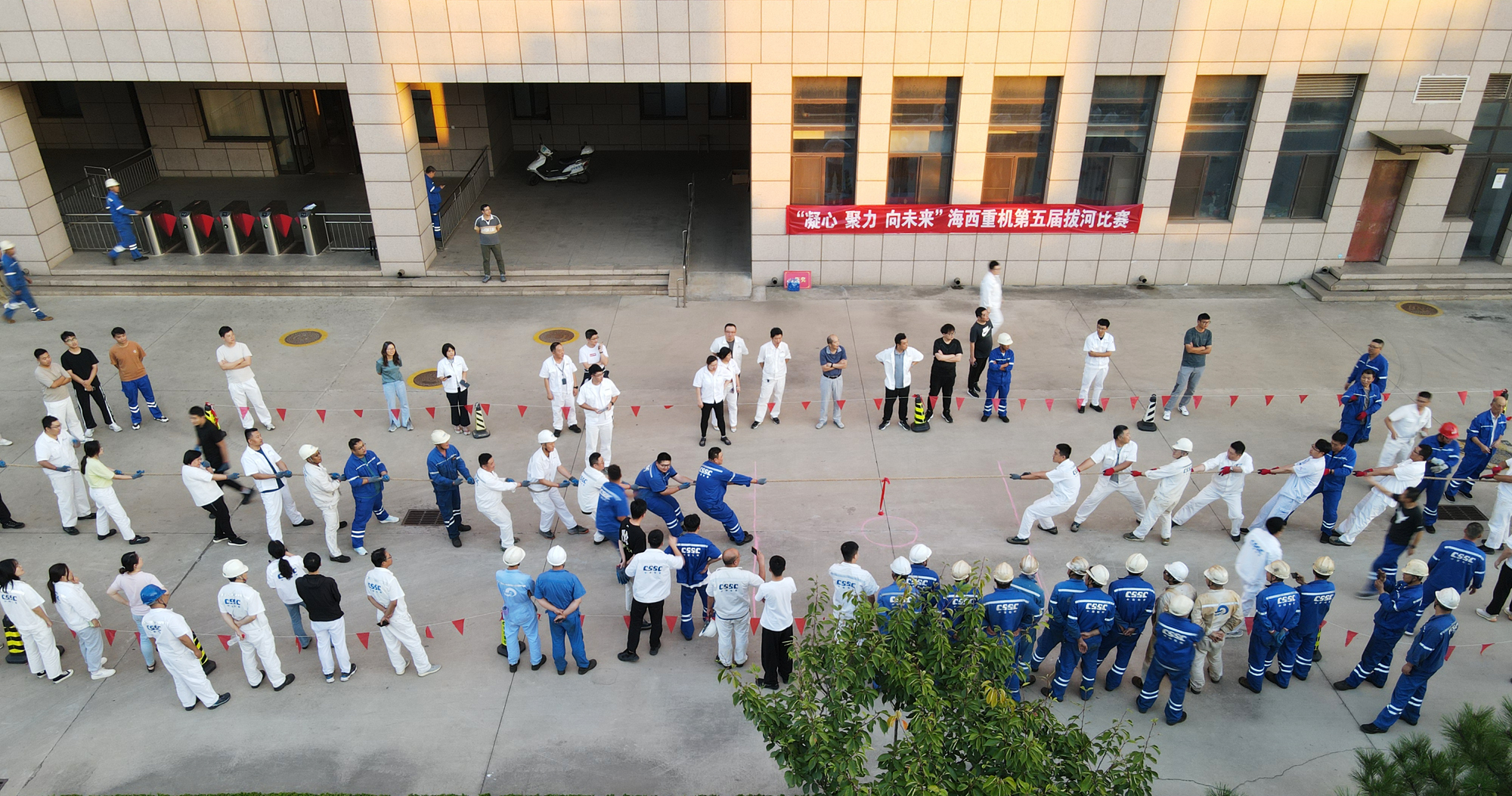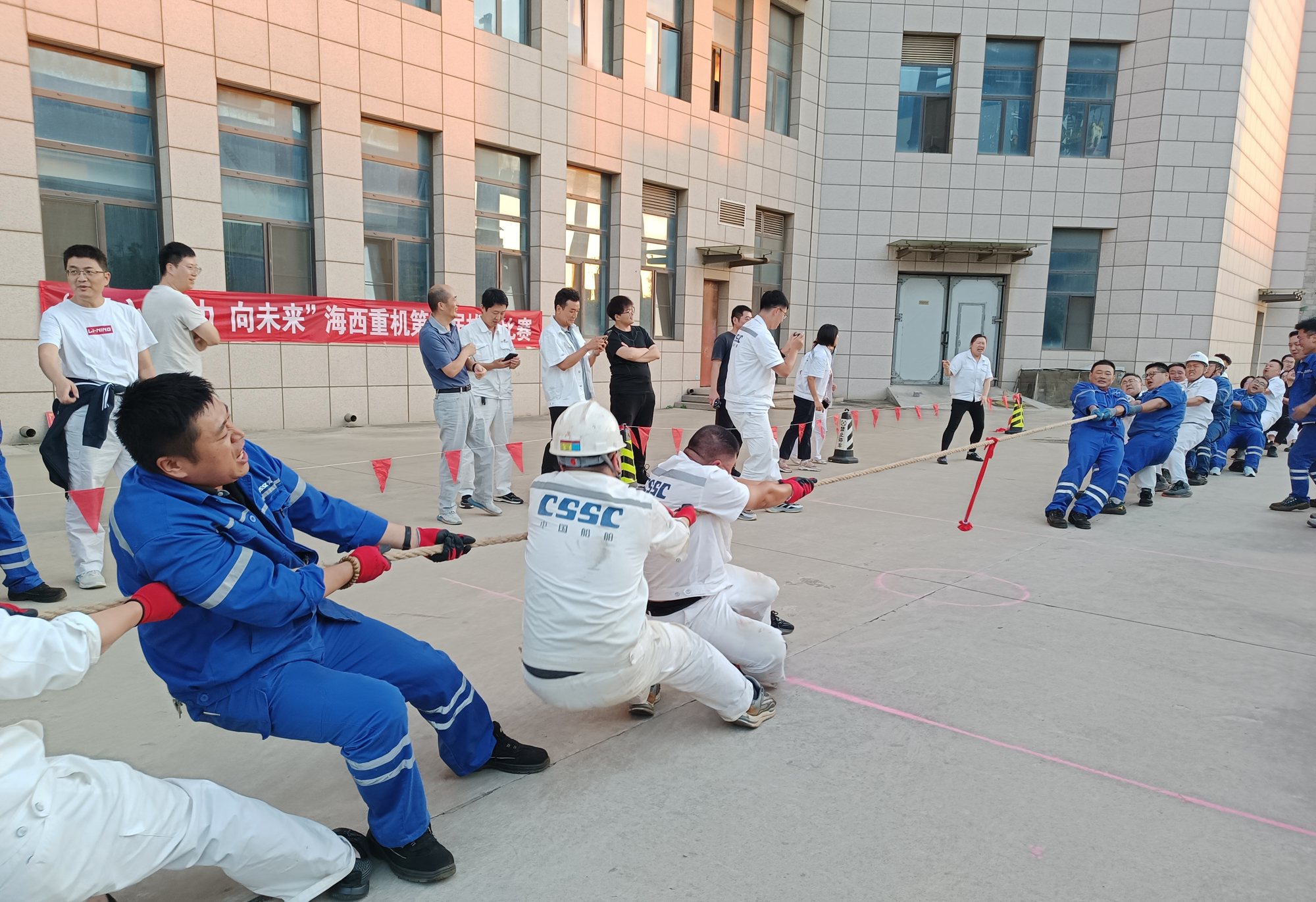 秋風(fēng)送爽,疊翠流金。為豐富員工文化生活,營(yíng)造團(tuán)結(jié)拼搏、積極向上的工作氛圍,為圓滿完成今年各項(xiàng)任務(wù)指標(biāo)鼓舞士氣,中國(guó)船舶集團(tuán)旗下武漢船機(jī)海西重機(jī)公司組織開(kāi)展了以“凝心 聚力 向未來(lái)”為主題的第五屆拔河比賽,經(jīng)過(guò)3天的激烈對(duì)決,本屆拔河比賽于9月21日順利落下帷幕。