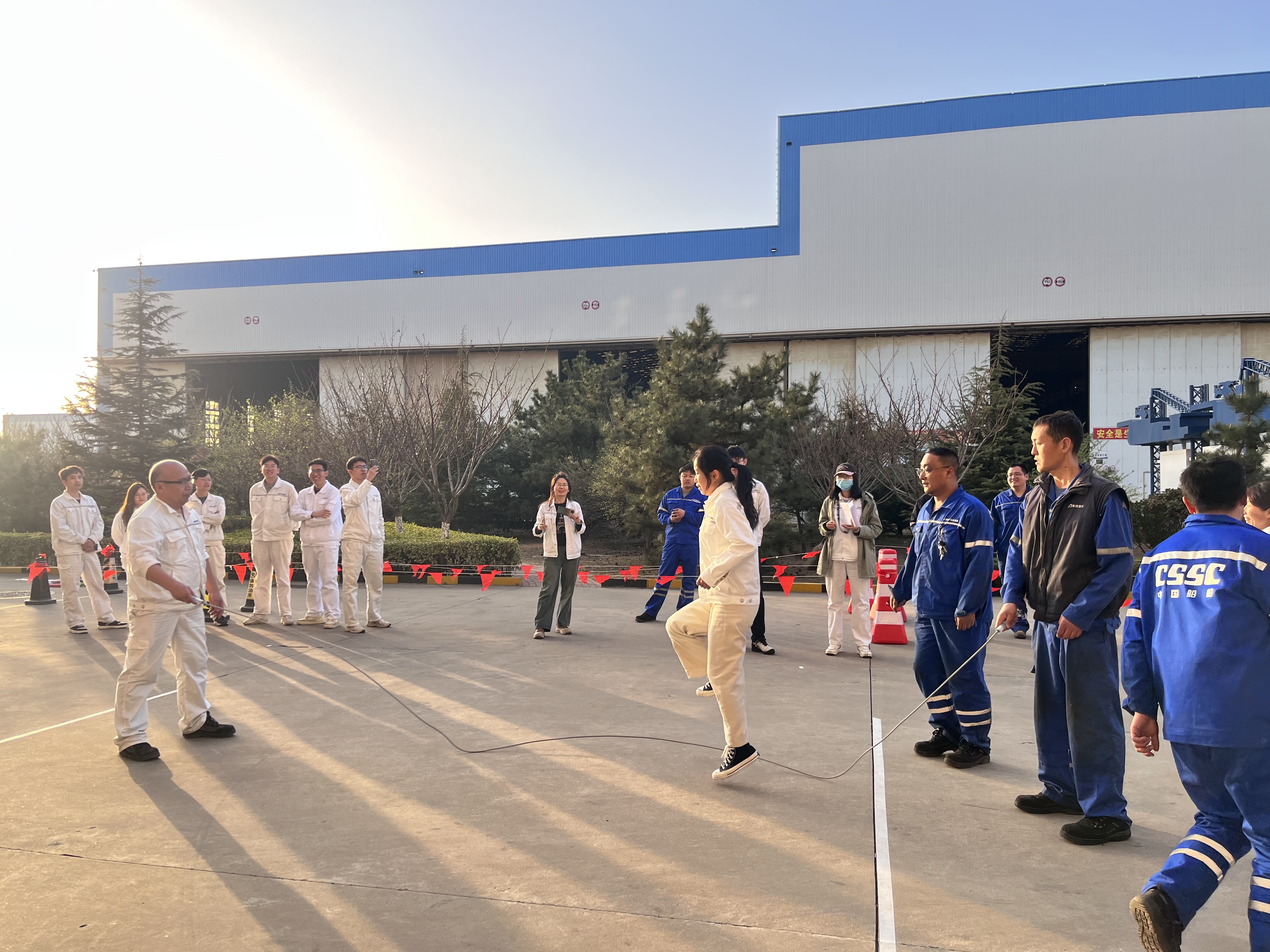 備受矚目的“巨人腳步”項目中,港口機械工程所的隊伍以口號統(tǒng)一步伐,如“鋼鐵巨人”般穩(wěn)步?jīng)_向終點,展現(xiàn)了驚人的默契?!凹w跳長繩”更是高潮迭起,跳繩隊員的靈活身姿與搖繩者的精準節(jié)奏相得益彰,最后品質管理部以3分鐘完成102次的佳績摘得單項冠軍。技術中心分會的謝士嬌在“摸石過河”中表現(xiàn)搶眼,她巧妙鋪磚、輕盈跨步,為團隊節(jié)省關鍵時間?!拔覀兣驴墒恰畱?zhàn)術擔當’!”她賽后笑稱。