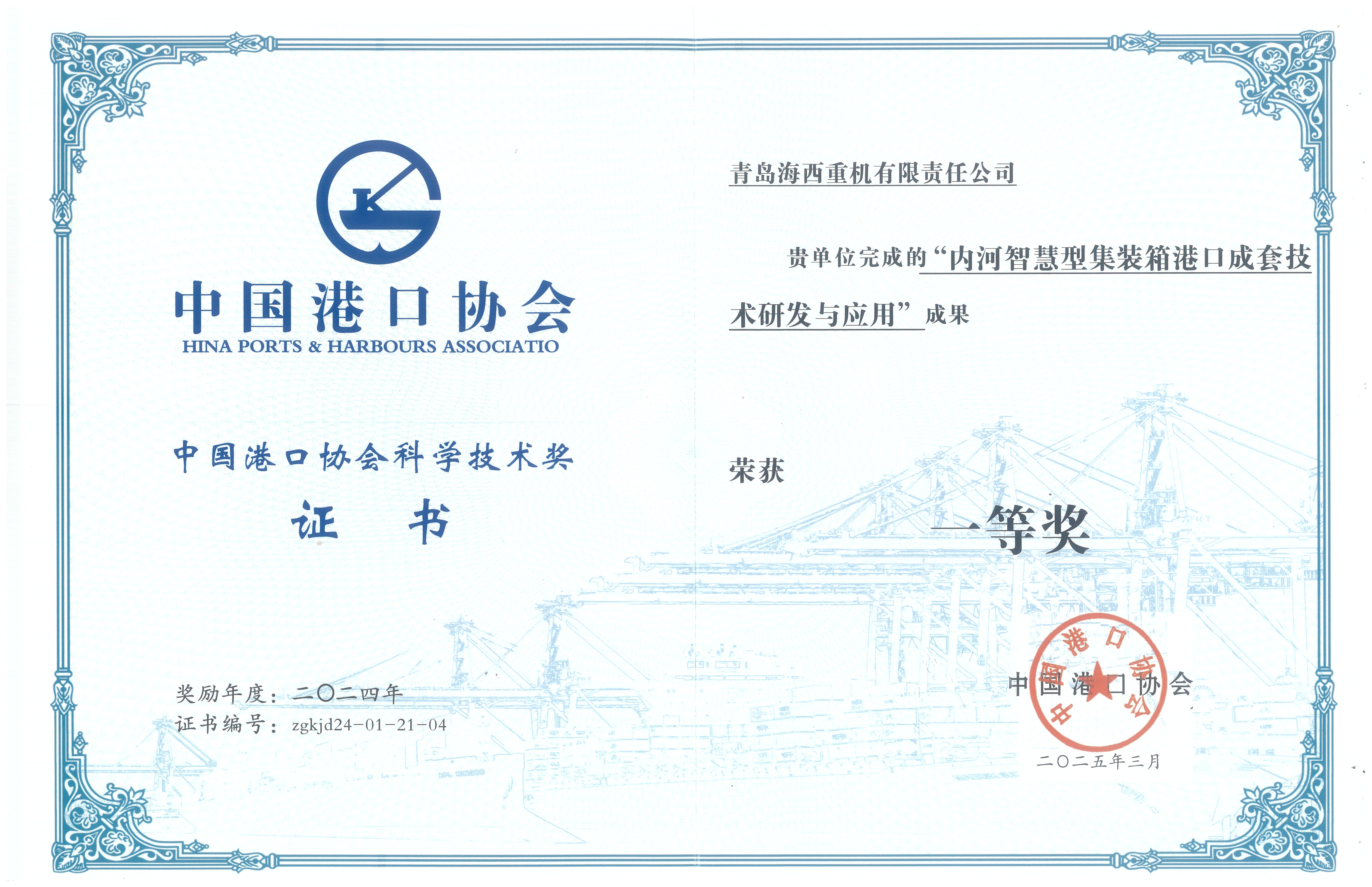 近日,由海西重機(jī)深度參與并共同申報(bào)的技術(shù)成果——龍拱港《內(nèi)河智慧型集裝箱港口成套技術(shù)研發(fā)與應(yīng)用》項(xiàng)目榮獲科技部和國家獎(jiǎng)勵(lì)辦公室共同批準(zhǔn)設(shè)立的2024年度“中國港口協(xié)會科學(xué)技術(shù)獎(jiǎng)”科技進(jìn)步一等獎(jiǎng)。項(xiàng)目實(shí)施方龍拱港成為了江北內(nèi)河首個(gè)獲得中國港口協(xié)會科學(xué)技術(shù)一等獎(jiǎng)的港口,這一突破標(biāo)志著海西重機(jī)在智慧港口領(lǐng)域的技術(shù)創(chuàng)新與系統(tǒng)集成能力再獲國家認(rèn)可。