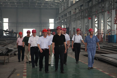 在生產(chǎn)現(xiàn)場(chǎng),吳強(qiáng)一行參觀了鋼板庫(kù)、預(yù)處理、下料、鋼結(jié)構(gòu)等車(chē)間,對(duì)我司產(chǎn)品制造的各個(gè)環(huán)節(jié)和生產(chǎn)能力進(jìn)行了詳細(xì)的了解,聽(tīng)取了我司總經(jīng)理李士國(guó)對(duì)我廠基建設(shè)施建設(shè)和未來(lái)三年生產(chǎn)經(jīng)營(yíng)計(jì)劃的匯報(bào),吳強(qiáng)對(duì)我廠取得的成績(jī)給予充分的肯定,并要求海西重機(jī)在以后的生產(chǎn)發(fā)展中再接再厲,加強(qiáng)基礎(chǔ)管理,合理的安排生產(chǎn)計(jì)劃,全面提升生產(chǎn)制造能力和水平,要繼續(xù)發(fā)揮自身優(yōu)勢(shì),與海西灣的成員單位團(tuán)結(jié)起來(lái),利用集體的力量謀取共同的發(fā)展,取得更好的成績(jī)。