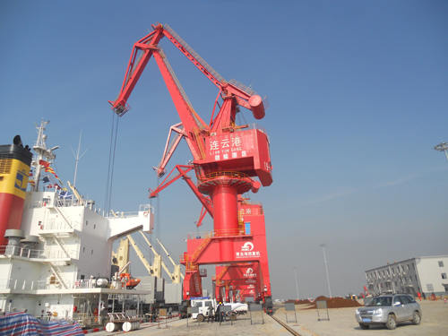 2012年12月25日上午,隨著4臺(tái)MQ4043門(mén)機(jī)從中國(guó)香港籍“金澤”輪上卸下第一鏟紅土鎳礦,江蘇省沿海開(kāi)發(fā)戰(zhàn)略重要工程, “一體兩翼”規(guī)劃戰(zhàn)略中的重要北翼———連云港贛榆港區(qū)正式開(kāi)港通航,也標(biāo)志著連云港“以港興市”戰(zhàn)略的飛躍。