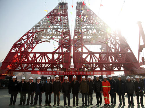 12月30日,由海西重機(jī)研制的3600噸大型浮吊交付暨列編儀式在公司碼頭隆重舉行,煙臺(tái)打撈局局長(zhǎng)杜檸、CCS、公司董事長(zhǎng)何紀(jì)武等領(lǐng)導(dǎo)出席了會(huì)議,標(biāo)志著3600噸浮吊經(jīng)過近兩年的制造正式交付并列編交通運(yùn)輸部煙臺(tái)打撈局。
