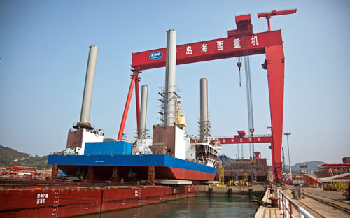 近日,海西重機(jī)自主研發(fā)設(shè)計(jì)的下水平臺在公司碼頭初次亮相,并助力90米(F5)海工平臺順利下水。這是公司首次利用新型輔助設(shè)備——下水平臺成功實(shí)現(xiàn)海工平臺下水。